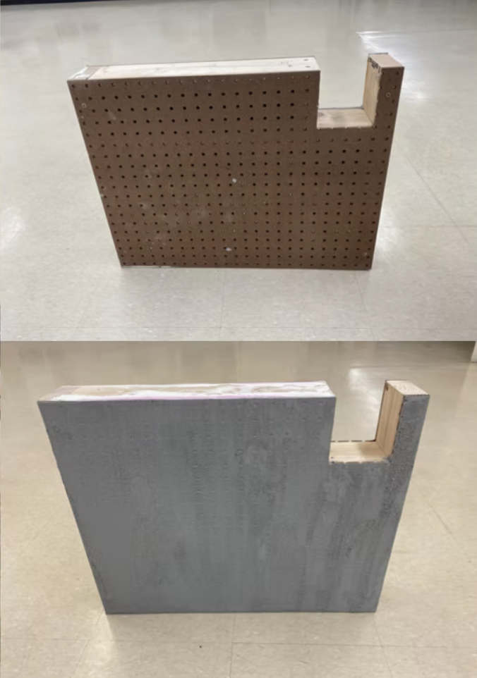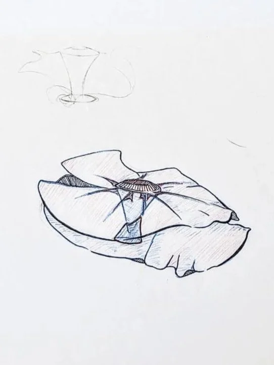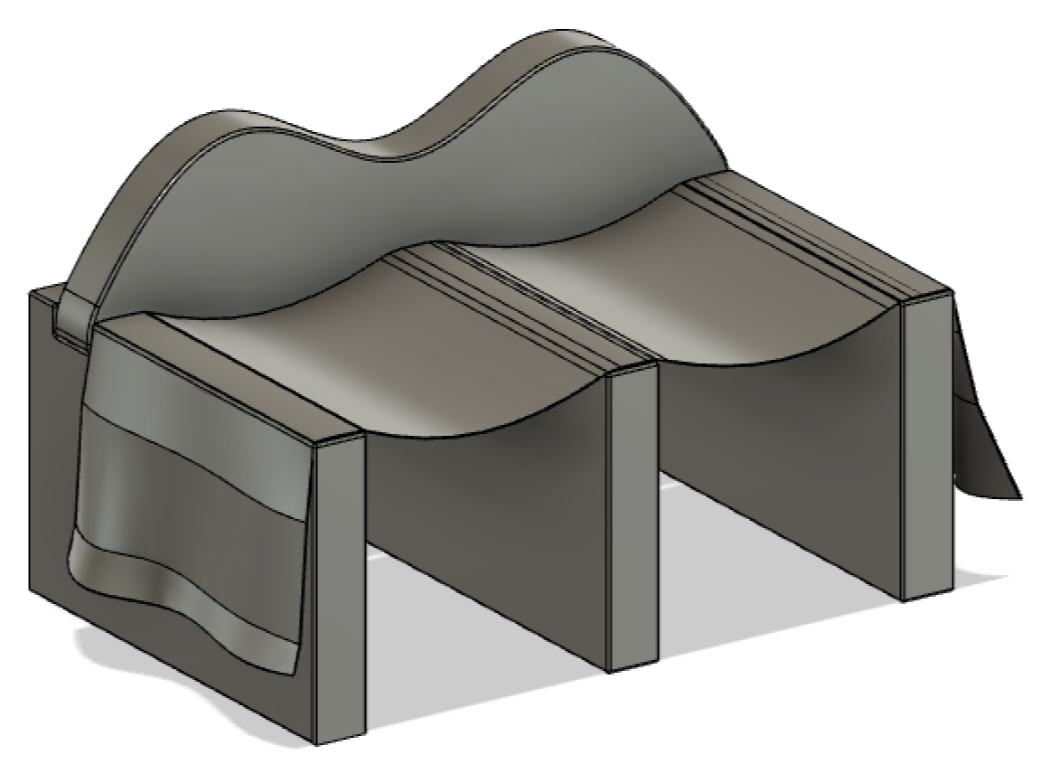 After the ideation phase, I moved into prototyping to test how the textile could actually work as part of the structure. I experimented with soaking the fabric in epoxy to see if it could support the weight of a seated user while still holding its shape and staying attached to the frame. This stage also helped me understand if the material could keep its color and maintain a flowing form, almost like it is being moved by the wind. The textile, sourced from Mexico, became an important element in representing Tijuana within the design and reinforcing the idea of unity between the two cities.